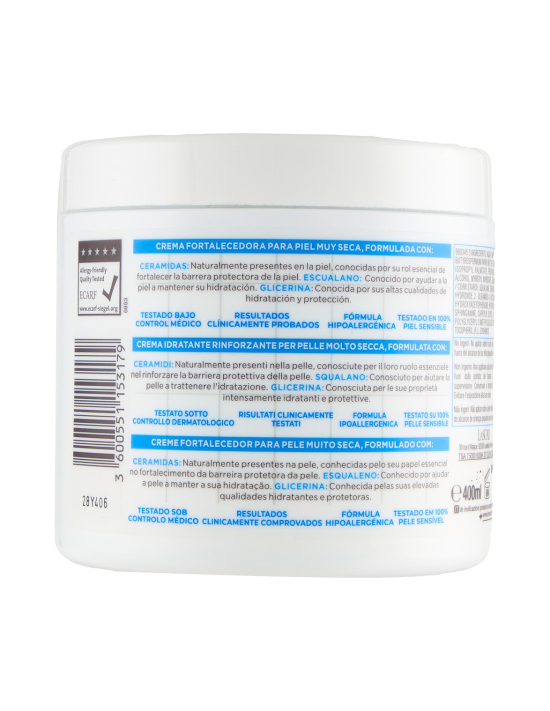 - حاوی سرامید: سرامیدها چربیهای طبیعی هستند که در ساختار پوست وجود دارند و نقش مهمی در حفظ سلامت و استحکام آن دارند.در این کرم، وجود سرامید باعث میشود لایهی محافظتی پوست تقویت شود، از دست رفتن رطوبت کاهش پیدا کند و پوست توانایی مقابله با خشکی، تحریک یا آسیب را بهتر پیدا کند. این ویژگی بهویژه برای پوستهای خیلی خشک یا حساس اهمیت زیادی دارد.