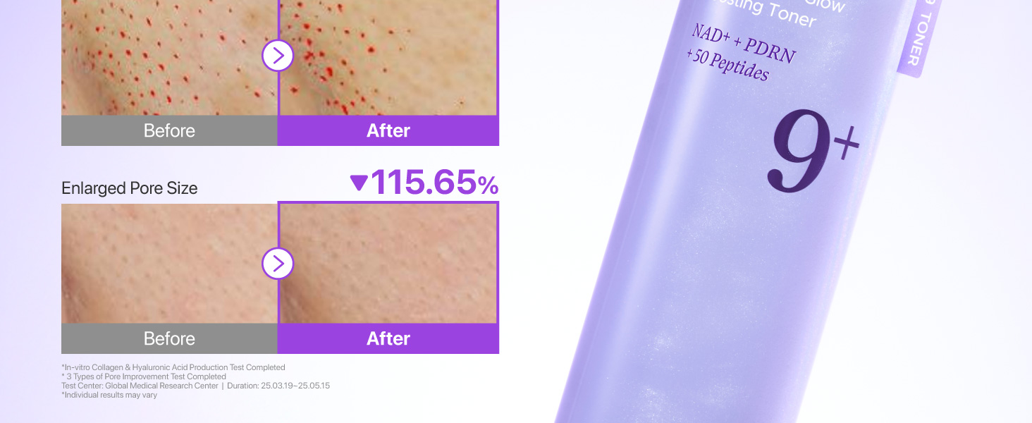 با استفاده مداوم از تونر نامبوزین مدل NAD+ + 50 Peptides، پس از حدود ۲ تا ۳ هفته تغییرات مشهودی در پوست دیده میشود:
