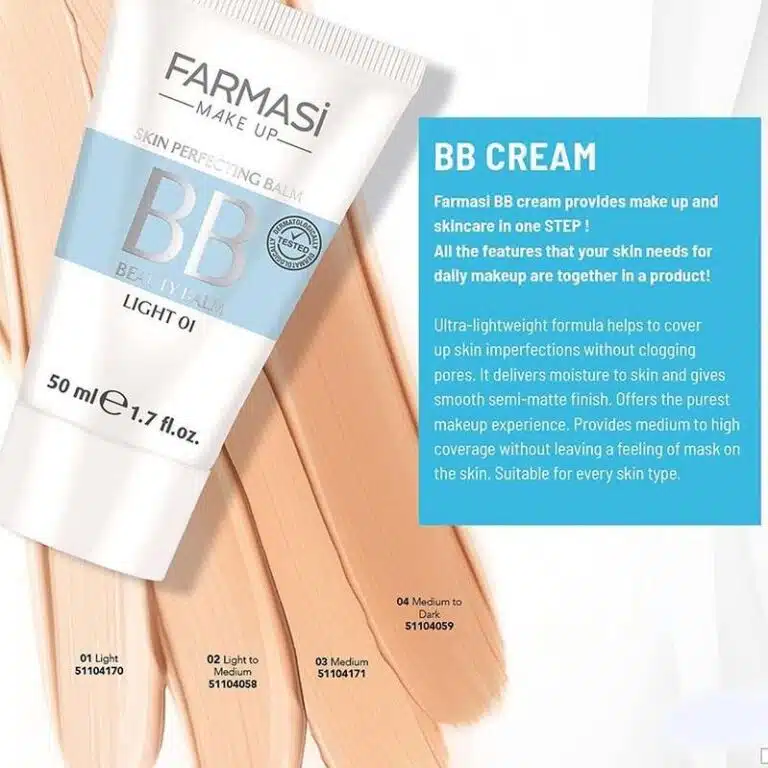 ب ب کرم 7 کاره فارماسی Farmasi شماره 2 حجم 50 میل محصول کشور ترکیه و دارای 7 نوع ماده موثره مناسب انواع پوست می باشد. امروزه بیشتر افراد جامعه به دلیل حس خوب و اعتماد به نفسی که آرایش کردن به آنها به سبب بی عیب و نقص نشان دادن چهره خود، علاقه دارند که از لوازم آرایشی استفاده کنند تا به چهره ای زیبا و بی نقص دست یابند.