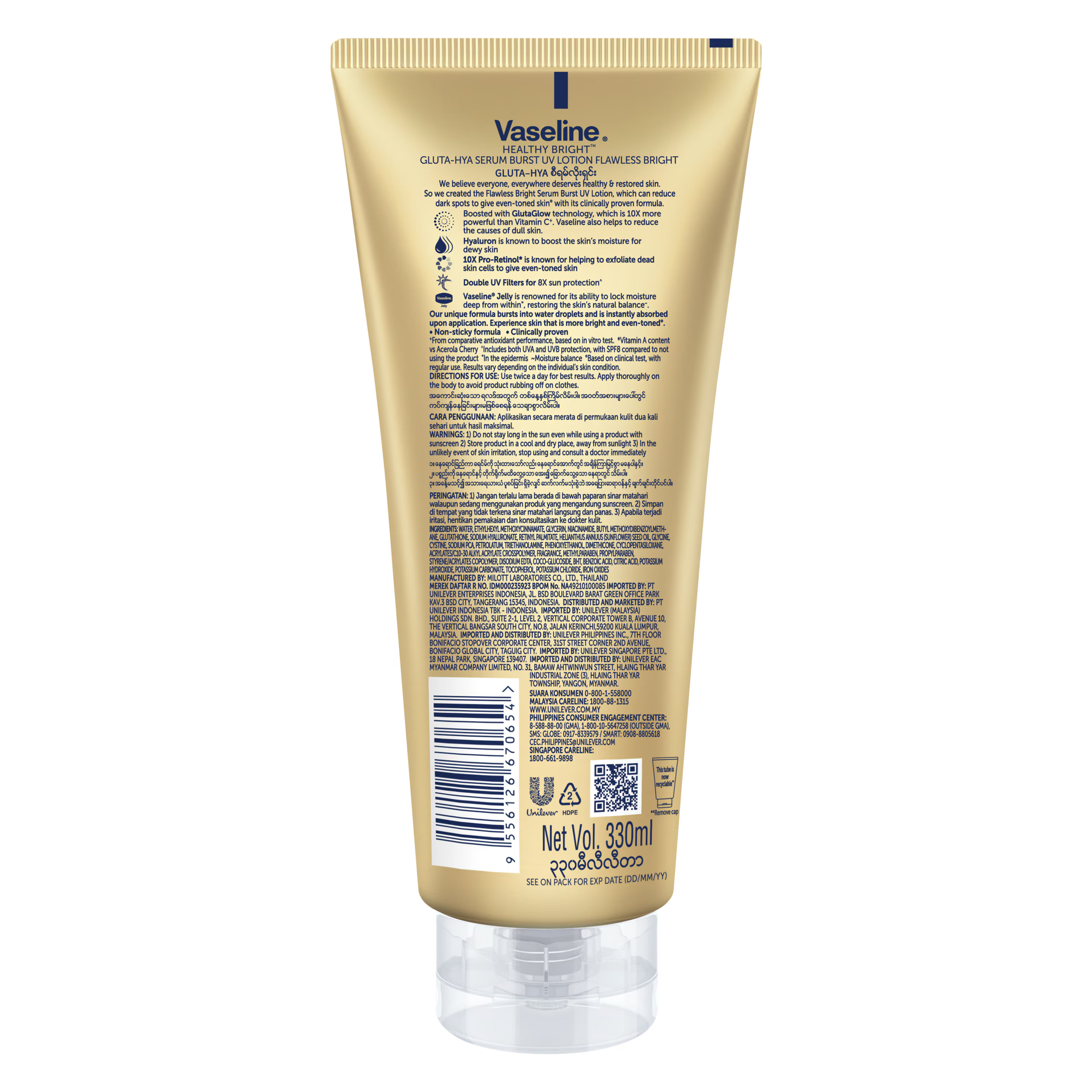 ترکیبات کلیدی لوسیون بدن Vaseline Gluta-Hya :